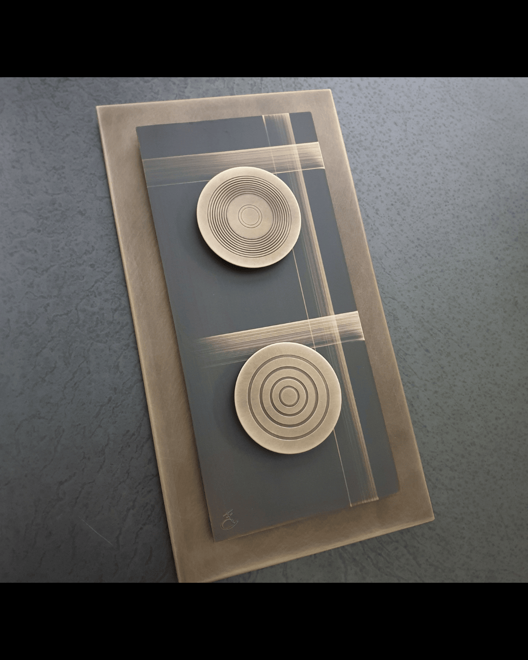 Ogni opera è un pezzo unico, realizzato a mano, che racconta una storia attraverso texture metalliche, colori ossidati, e forme geometriche astratte.